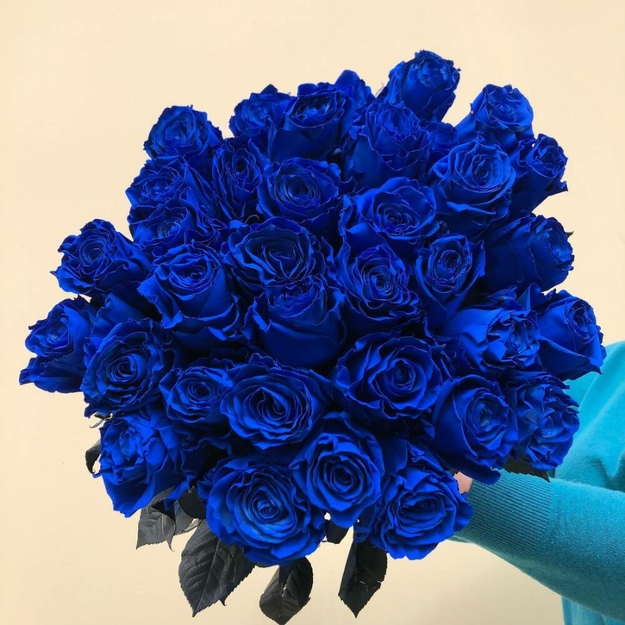 Монобукет из 31 синей розы «Ультрамарин» в Малоярославце